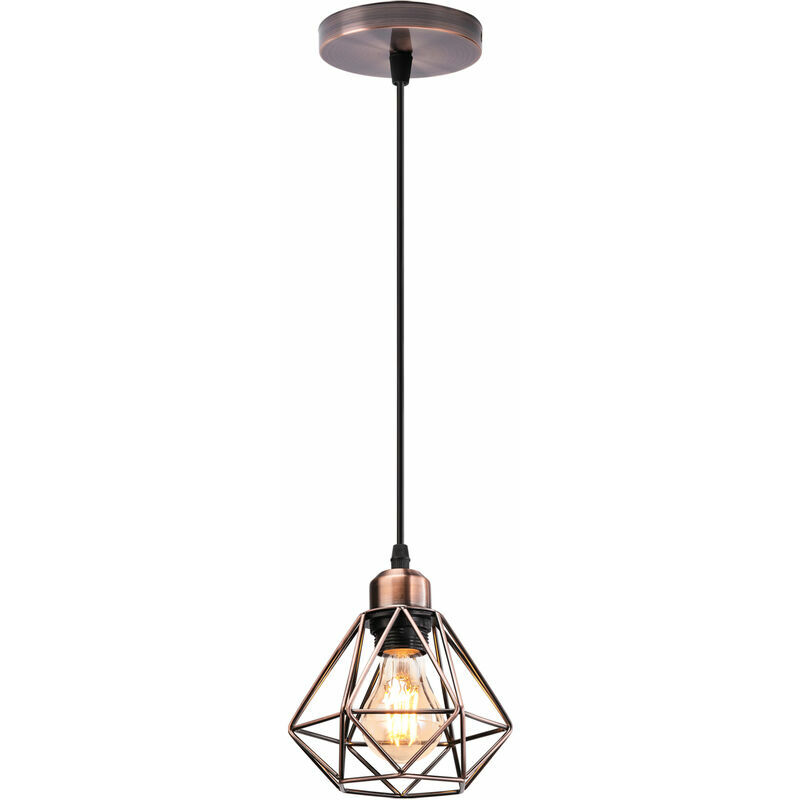 Sospensione a gabbia diamantata in ottone rosso Il design moderno, elegante e vintage dona un'atmosfera speciale ai tuoi interni. La forma della gabbia forma un diamante e sembra molto chic. Dimensioni gabbia (L x P x A): 16 x 16 x 18 cm | Diametro della base: 10 cm | Lunghezza della corda: 100 cm regolabile | Materiale: metallo | Colore: ottone rosso Tensione: 220-240 V | Presa E27 | Potenza: massimo 60W | Lampadina non inclusa | Lampadine esistenti: lampadina a LED, lampada a risparmio energetico, alogena. Struttura semplice, stile retrò, linee eleganti. Non solo illuminazione, ma anche decorazione per la tua casa Perfetta lampada a sospensione in stile industriale, perfetta per cucina, sala da pranzo, soggiorno, camera da letto, corridoio, ufficio, soppalco, caffetteria, stanza artigianale, bar, ristorante.