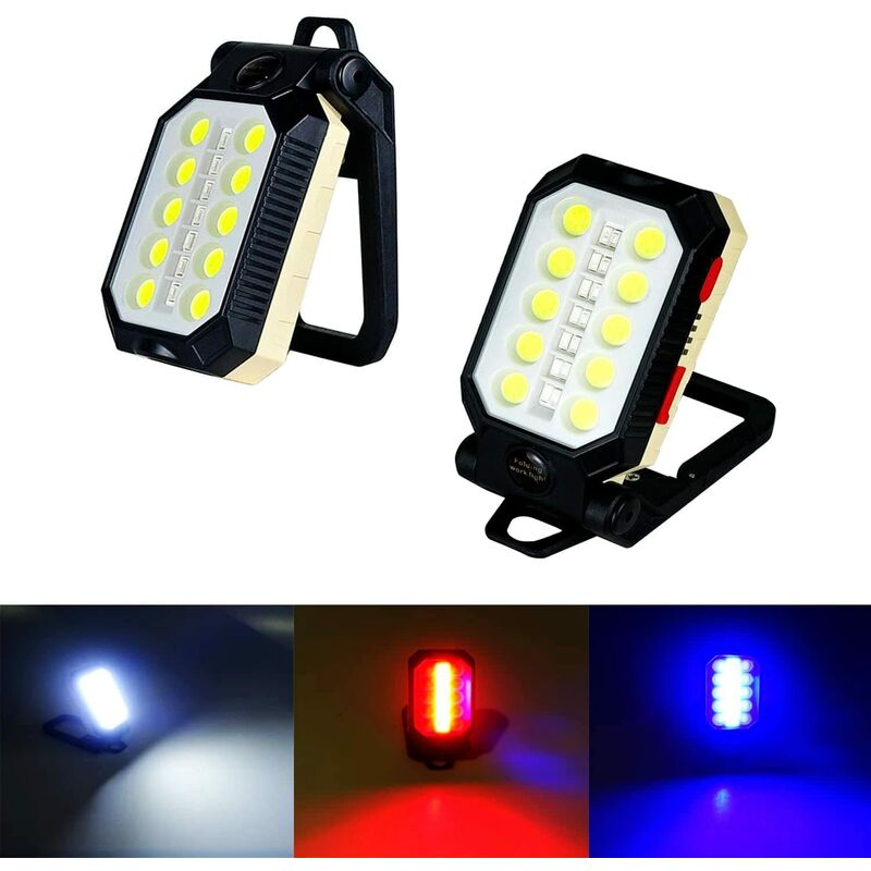Luce da lavoro LED COB - Luce principale 5W 550Lumen, luce ausiliaria 3W 250Lumen, 10 perline COB di alta qualità, la luce è più luminosa. Il design a fascio largo ti consente di vedere tutto ciò che ti serve per vedere al buio. 【3 modalità di illuminazione】 Luce di lavoro magnetica a LED con tre tipi di luci, bianca + rossa + blu e 3 modalità di alta luminosità, bassa luminosità e stroboscopio, in grado di soddisfare diverse esigenze di illuminazione. 【Luce da lavoro a sospensione a LED】 La luce da lavoro ricaricabile è dotata di potenti magneti incorporati, che la rendono stabile sull'auto, sulla pista o qualsiasi altra superficie metallica. Il design del gancio consente di appendere la luce da lavoro a oggetti come tende e utilizzarla come luce da campeggio. 【Ricaricabile e impermeabile】 La luce da lavoro a LED portatile ricaricabile si ricarica tramite il cavo USB incluso e ha una -nella batteria da 4400 mAh per una durata della batteria di lunga durata. La luce da lavoro COB è