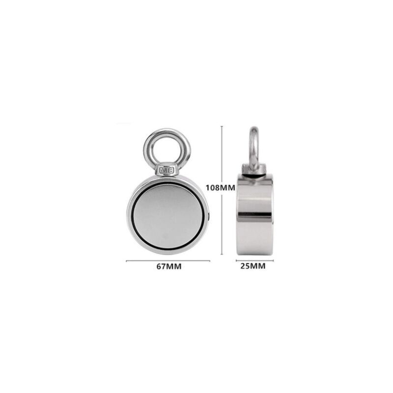 Potente magnete: Magnete di salvataggio ad anello singolo a doppia faccia D67 + corda da 6 mm * 20 m, set da 2 pezzi. Magnete a doppia faccia: design unico con forza magnetica a doppia faccia, un magnete fornisce al doppio la superficie per catturare i bersagli. È facile da montare con golfari direttamente sulla base in acciaio. Magnete al neodimio multiuso: ideale per recuperare vari materiali contenenti ferro nichel sott'acqua e buona idea per la pesca magnetica, il sollevamento, l'impiccagione, il recupero. Divertiti a cercare articoli come golfari, viti, ganci, elementi di fissaggio e così via nel tuo magazzino, garage o cortile. Miglior rivestimento: rivestimento a triplo strato. Il miglior rivestimento disponibile, che fornisce una tazza in acciaio rivestito brillante e resistente alla ruggine che fornisce protezione per il magnete e aiuta a prevenire scheggiature o crepe.