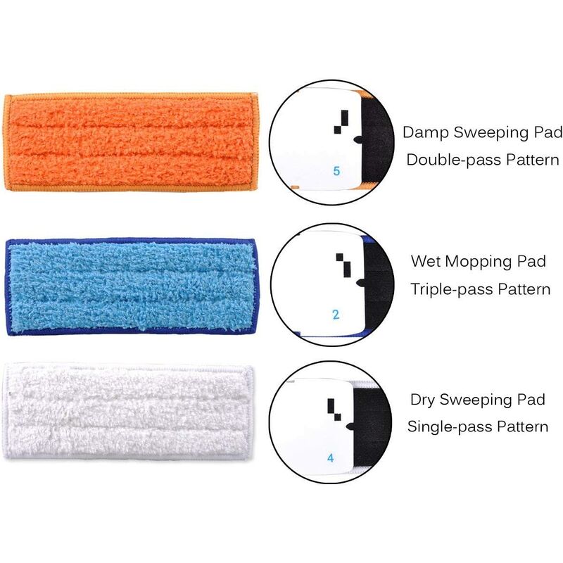 Salviette riutilizzabili economiche - Comodo design lavabile e riutilizzabile, molto più economico dei prodotti usa e getta. Salviette lavapavimenti (blu) -- Progettate per pulire efficacemente pavimenti in legno, piastrelle e pietre. p> Salviettine umidificate (arancione) -- Progettate per pulire delicatamente la polvere e lo sporco di tutti i giorni, lasciando l'area pulita e fresca. < p> Tamponi asciutti (bianchi) -- Progettati per intrappolare e bloccare la polvere, sporco di animali domestici su tutti i pavimenti duri, inclusi legno duro, piastrelle e pietra.