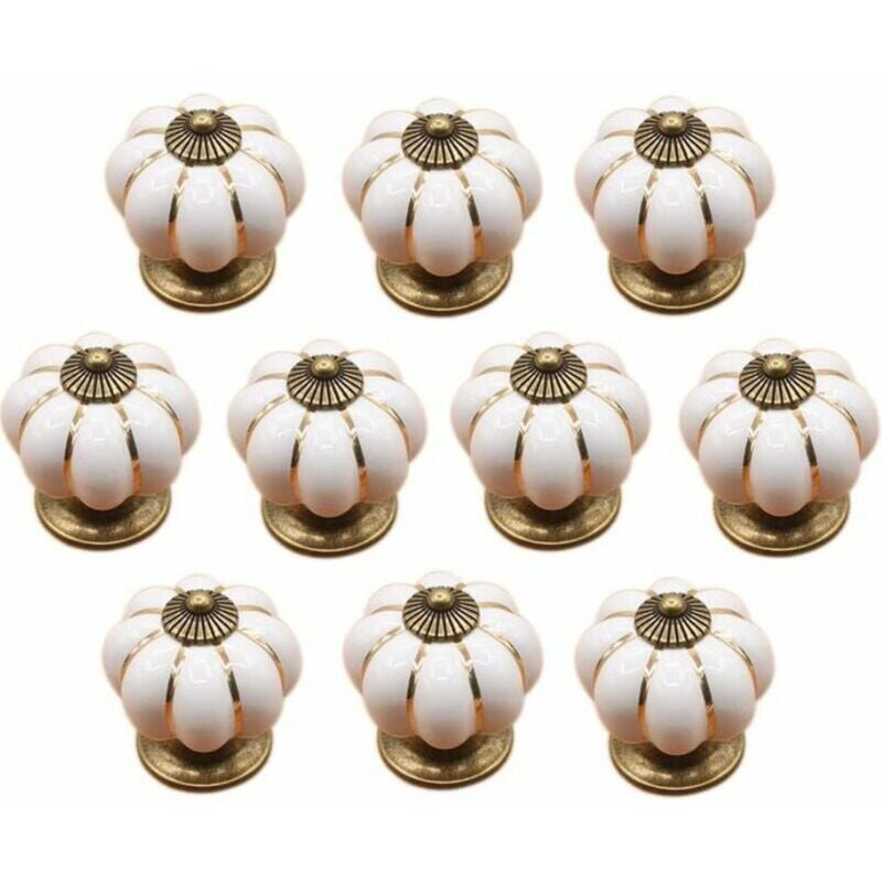 Il pacchetto include: 10 pomelli di zucca in ceramica, lega di zinco. Forma: bella forma, compatta e resistente, retrò e pratica, la bella forma di zucca è in stile molto europeo. Dimensioni: (L x H) 4,1 x 4,1 cm, diametro fissaggio pomello: circa 5 mm, diametro base: circa 2,8 cm. .