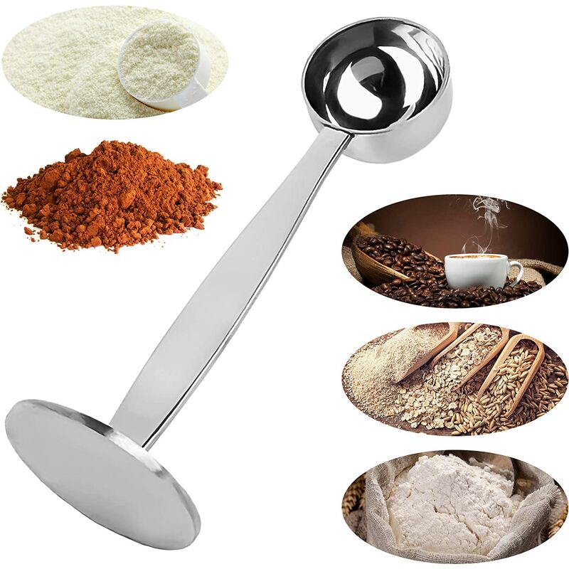 Design combinato: Combinazione di pressa per caffè espresso e misurino, bello avere due strumenti in uno in modo da occupare meno spazio, la solida base lo rende difficile da scuotere quando lo metti in piedi. Acciaio inossidabile: Seleziona materiali in acciaio inossidabile 201 premium, sicuri, confortevoli e durevoli, non produce la carica statica del caffè attaccato al cucchiaio di plastica, lavabile in lavastoviglie. Taglia: Lungo totale 14,5 cm, il manico extra lungo permette di raggiungere il fondo di sacchetti e contenitori ed evitare che i fondi di caffè rimangano sulle dita. Facile da pulire: Il misurino in acciaio inossidabile è facile da pulire e lavabile in lavastoviglie. Basta pulirli con acqua calda o metterli in lavastoviglie. Versatile: Non solo per il caffè macinato, ma ideali anche per cacao, proteine in polvere, tè, spezie, ecc., i chicchi di caffè macinato sono più profumati, il che consente anche di risparmiare sui costi di produzione.< /p>