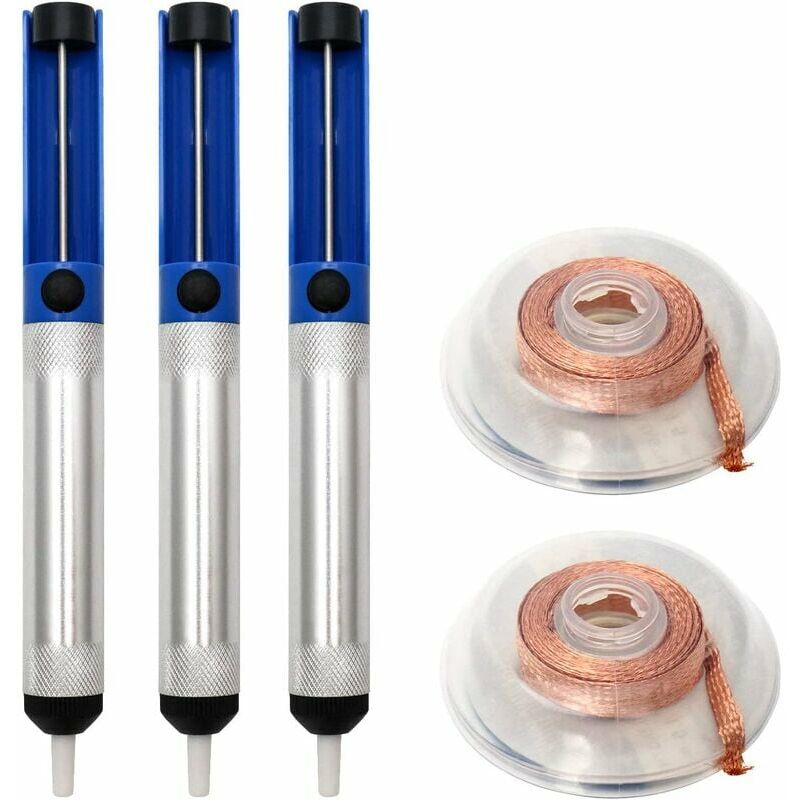 Eccellente nucleo di saldatura: questo nucleo di saldatura è di precisione, largo 2,5 mm e lungo 1,5 m, che aiuta a saldare aree difficili da raggiungere sulla scheda per evitare cortocircuiti. Ventosa per saldatura durevole: Realizzato in alluminio e plastica di alta qualità, con robusto telaio in alluminio e buona tenuta, fornisce un vuoto ad alta pressione per una forte aspirazione per pulire la saldatura sui circuiti stampati. Design speciale: adatto per l'uso con una sola mano, adatto per utenti mancini e destrimani. Una volta che la saldatura è riscaldata, premi il pulsante di aspirazione con una mano e tutta la saldatura sarà pulita, perfetta per la dissaldatura. Usi: ampiamente utilizzato per rimuovere relè e altri componenti nei circuiti, circuiti stampati., pulizia della saldatura su circuiti stampati, dissaldatura di parti di computer, risaldatura di interruttori elettromeccanici, ecc. Servizio soddisfacente al 100%: speriamo sinceramente che i nostri prodotti