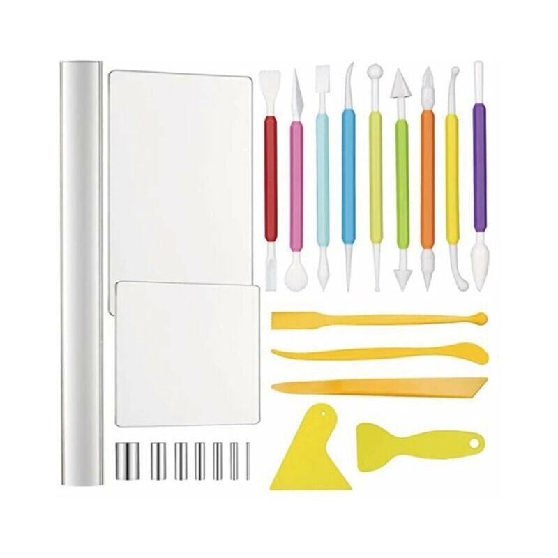 Set di strumenti per modellare l'impasto in plastica da 24 pezzi - Realizzato in plastica resistente, è leggero e facile da trasportare. Profilo terminale curvo Caratteristiche delicate per soddisfare le diverse esigenze, ideale per lavori dettagliati, ideale per incidere, modellare, modellare, punteggiare, raschiare, tagliare, spazzolare, levigare, ecc. Raschietto per argilla: realizzato in gomma per una maggiore durata . Questi raschietti sono strumenti essenziali per modellare, modellare, levigare, appiattire e tagliare l'argilla e altri materiali di modellatura. Lo strumento ago e lo strumento texture filo di piume hanno aghi affilati e resistenti per piccoli dettagli. Le lame di argilla ti aiutano a tagliare quando fai l'argilla. La cazzuola è affilata, fai attenzione a non lasciare che i bambini la usino da soli. REGALO PERFETTO: lo strumento di ceramica perfetto per l'argilla in ceramica, altri progetti di scultura e artigianato. Un ottimo strumento per progetti artistici e di