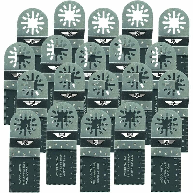 Kit di 20 lame universali Lame bimetalliche 20 x 35 mm Ideali per tagliare legno, metallo, chiodi, plastica, Placoplâtre, fibra di vetro, acrilico (plexiglass), laminato Il sistema di montaggio UniLok significa che sono progettati per adattarsi perfettamente al tuo multiutensile (compresi i multiutensili compatibili con le lame Bosch - non compatibili con le macchine StarLock) Lame multiutensile di qualità professionale con scala di misurazione (mm e pollici) Contenuto della confezione: 20 lame bimetalliche TopsTools 35mm UN35B. Lama bimetallica (B): ideale per tagliare legno, metallo, chiodi, plastica, Placoplâtre, fibra di vetro, acrilico (plexiglass ), laminato. Usa questa lama HSS se tagli legno con chiodi incorporati e legno duro, ti farà passare qualsiasi cosa. Non adatto per acciaio ad alta resistenza (viti, bulloni, ecc.).