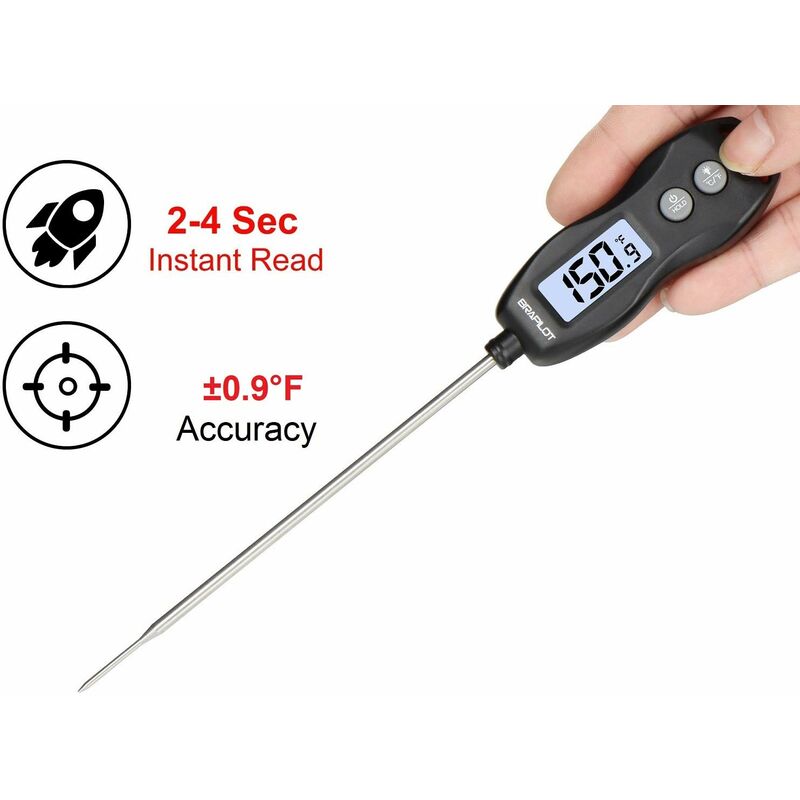 ✅ Lettura istantanea e accurata: tempo di risposta 2-4 secondi, precisione 0,1. Intervallo di temperatura: Intervallo di misurazione della temperatura: Da -50°C a 300°C (da -58°F a 572F), risoluzione del display: 0,1°C /0,2°F, Precisione: Da +/-1°C (-2°F) a -20°C a 150°C(-4°F-302°F), ✅ Display retroilluminato - Premi il pulsante "Luce" per girare sulla retroilluminazione, se non viene eseguita alcuna operazione entro 10 secondi, la retroilluminazione si spegne automaticamente. ✅ Interruttore ON/OFF - Tenere premuto il pulsante "ON/OFF" per 3 secondi per spegnere il schermo, se non si esegue alcuna operazione per 10 minuti, lo schermo si spegne automaticamente. ✅ FACILE DA USARE - Basta inserire la sonda nel cibo o in un liquido e attendere 3-4 secondi finché non viene visualizzata la temperatura finale ;
