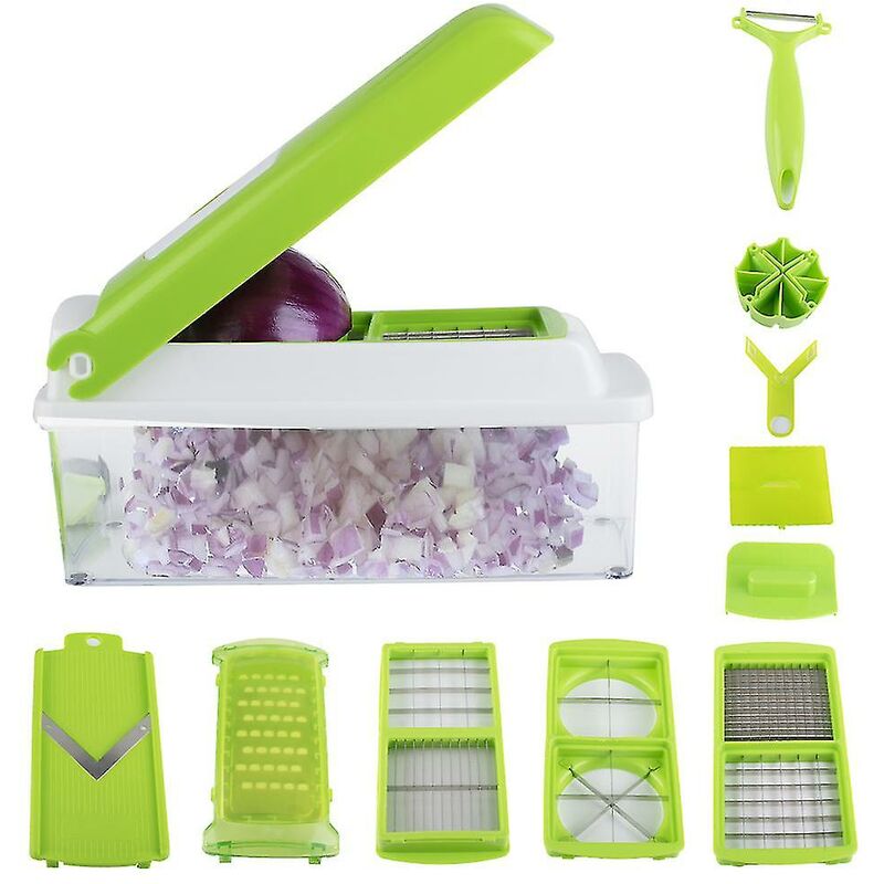 Ti piacerebbe provare un tagliaverdure manuale super pratico che ti semplificherà la vita in cucina? Se è così, allora la tua ricerca è finalmente finita, perché il tritacarne e il tritacarne ha il prodotto giusto per le tue esigenze Diventa un maestro di cucina avanzato facilmente: sei un vero amante dell'arte della cucina? Ami intrometterti in cucina e organizzare cene piene di gusto ai tuoi amici? Accessori per il cibo da cucina indispensabili: ideali per ogni famiglia, questo tritacarne 10 in 1 non dovrebbe mancare nei tuoi armadietti o nel bancone della cucina. rende il tritare, affettare, tagliare a dadini e grattugiare le verdure un gioco facile e divertente, non importa se sei un veterano in cucina o se preferisci ricette semplici e facili. Trita, Taglia, Taglia E Altro: Non uno, due o anche tre Il tritaverdure Peralng vanta 10 lame intercambiabili, che ti danno numerosi modi per sbucciare, sminuzzare, affettare e grattugiare le tue verdure al fine di creare piccole meraviglie