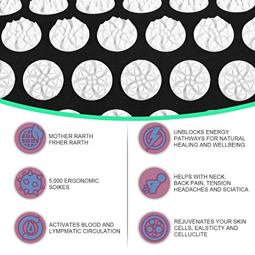【Materiali di qualità】sappiamo che i nostri clienti sono consapevoli della loro salute e della loro cura per i prodotti che utilizzano. Il nostro set di tappetini per agopressione e cuscino si sentono bene con le dita dall'interno verso l'esterno. Il tappetino per massaggio è realizzato in 100% cotone e imbottitura ad alta densità. L'ago è un ABS di alta qualità, che è innocuo per il corpo.