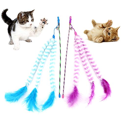 Benoon Giocattoli di Piume per Gatti con Campana, Bastone per Gatti Teaser Stick Gioco Interattivo Forniture per Animali Domestici Blu
