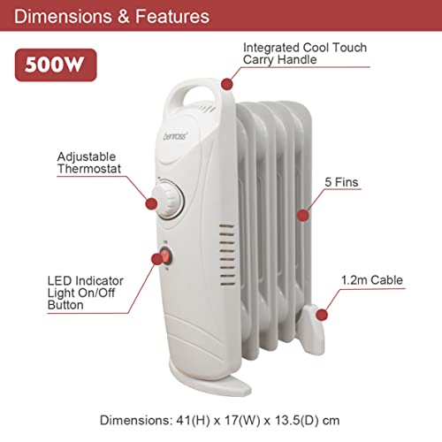 Benross 5 Fin Mini Oil Filled Radiator 500 Watt White