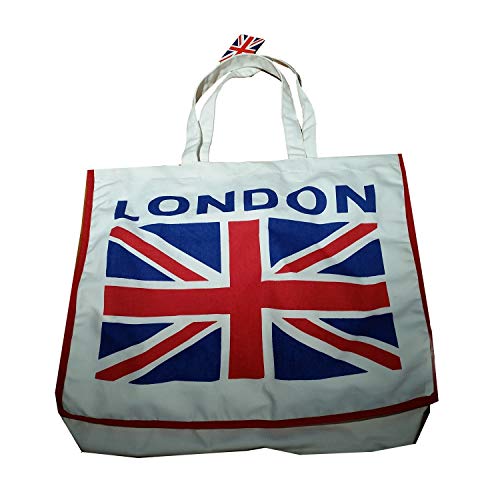 White Cotton Canvas shopping bag con Union Jack stampa