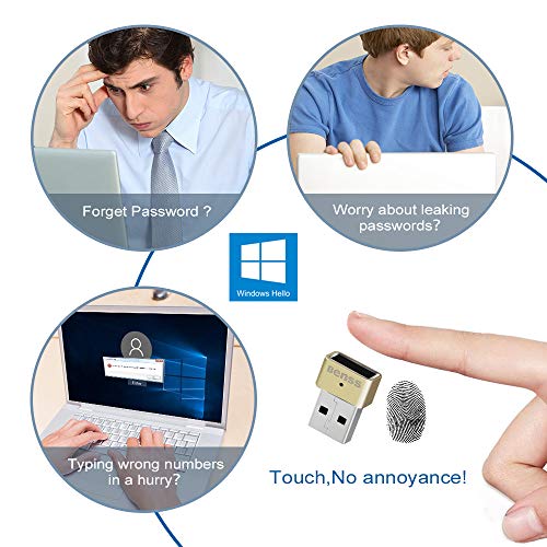 Benss Lettore di impronte Digitali Mini USB Fingerprint Reader per Windows 10, senza bisogno di driver, laptop/PC/desktop con abbinamento veloce a 360 gradi con certificazione WQHL.