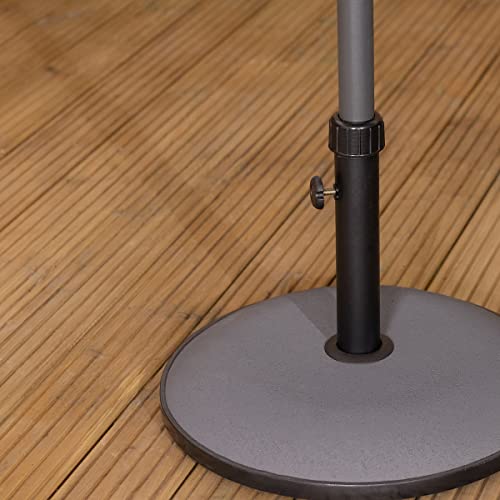 Questa base per ombrellone rotonda è realizzata in cemento massiccio. Sostiene ottimamente l'ombrellone in caso di brezza leggera o vento. Adatta per ombrelloni con palo di 4,5 cm di diametro o meno. È dotata di vite di serraggio laterale per fissare in tutta sicurezza l'ombrellone alla base. Dotato di una fascia in plastica alla base per evitare danni quando lo si sposta.
