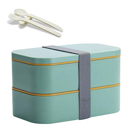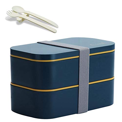 Bento Box Lunch Box con Set di posate riutilizzabili a 2 livelli per microonde isolato a prova di perdite, per lavastoviglie e congelatore, Bento Box Lunch Box per adulti Bentobox