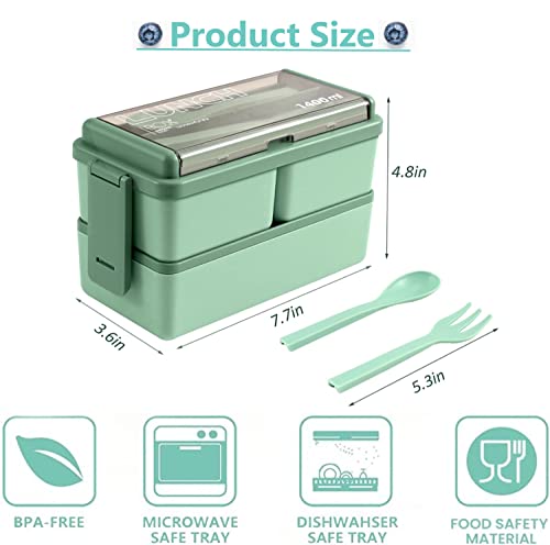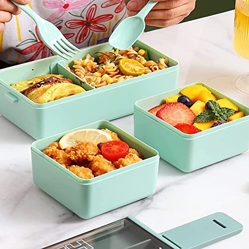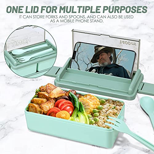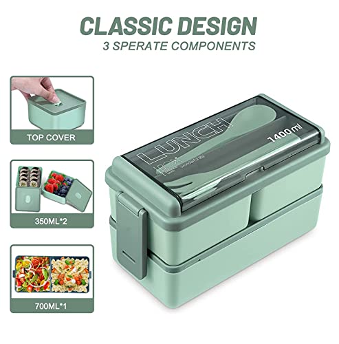 Bento box,lunch box, 1400 ml box pranzo a tenuta stagna per uomo e donna, con 3 scomparti, cucchiai e forchette, forno a microonde e lavastoviglie di sicurezza (Verde)