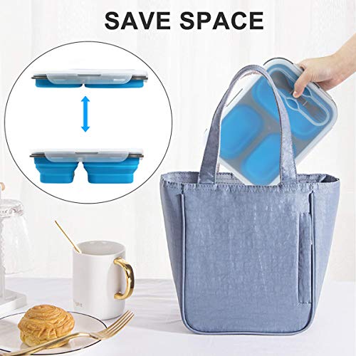 Bento box pieghevole, contenitore per alimenti in silicone a 3 scomparti, contenitore per alimenti a tenuta stagna con cucchiaio forchetta - microonde/congelatore sicuro