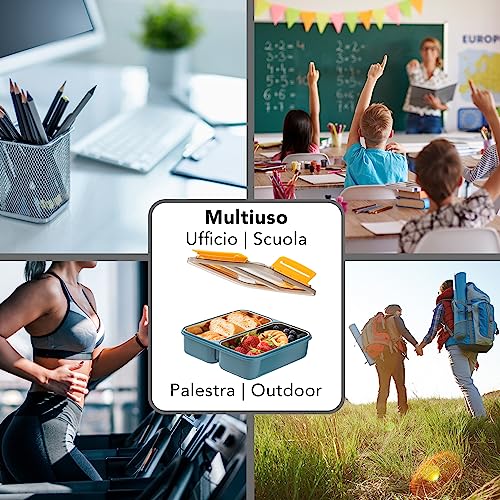 Bento Box per portare cibo in ufficio o a scuola, ogni contenitore Portapranzo è 100% Ermetico e riscadabile in microonde, Porta Pranzo da 1,1L, Lunch Box Termico a 2 scomparti in Acciaio Estraibili.