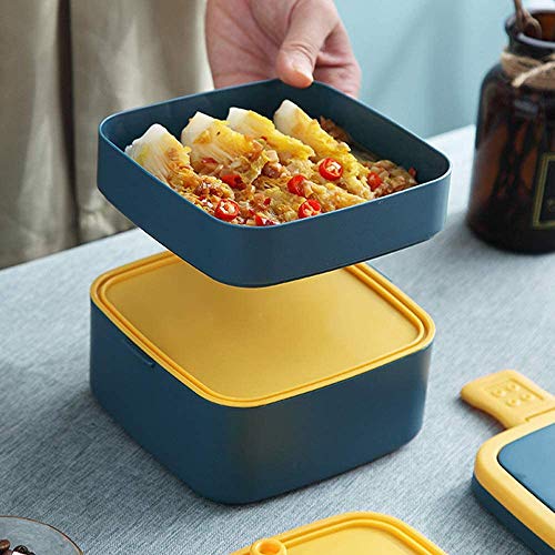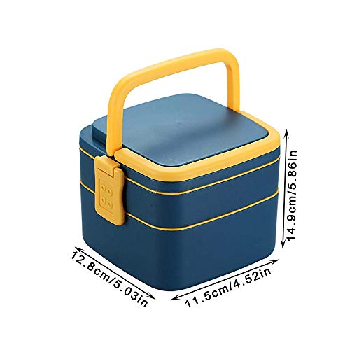 Bento Box,Bento Box con 2 Scomparti,Lunch Box con Manico,Lunch Box Ermetico,Lunch Box Bambini Bento,Bento Box a Prova di Perdite,Bento Lunch Box Adulti,con Cucchiaio,per Scuola,Lavoro,Picnic(Blu)