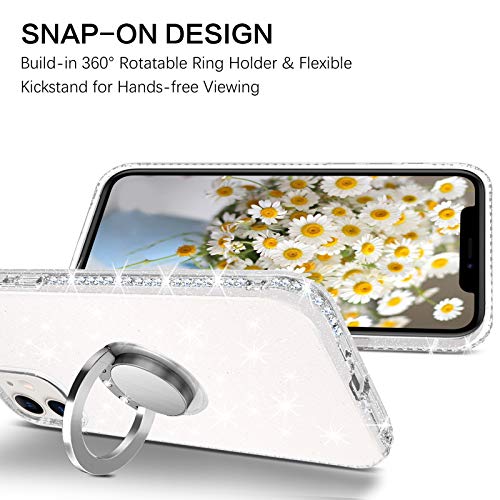 Bentoben - Cover compatibile con iPhone 12, cover iPhone 12 Pro, sottile, glitterata, in silicone TPU, morbida, con strass, morbida, con supporto rotondo, per iPhone 12/12, trasparente