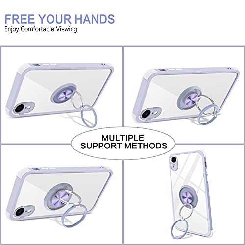 Bentoben - Cover compatibile con iPhone XR, sottile, con supporto a doppio anello a 360°, supporto magnetico per auto, per iPhone XR, colore: Trasparente/Viola