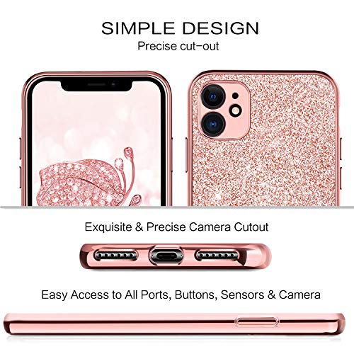 BENTOBEN Cover iPhone 11, Custodia iPhone 11, Cover iPhone 11 Donna Cellulare Bling Antiurto Morbida Protezione AntiGraffio Slim Antiscivolo Satinata Cover per iPhone 11 Rosa Oro