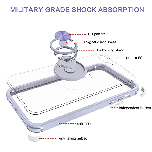 ★【Modelli di telefono compatibili】: questa bella cover per telefono viola chiaro/lavanda è compatibile solo con iPhone 7 Plus/8 Plus, non è adatta ad altri modelli di telefono. 【Supporto a doppio anello pratico e girevole a 360° integrato, può funzionare come un cavalletto flessibile e supporta il supporto magnetico per auto