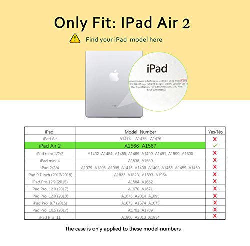 Modelli Compatibili: Questa custodia protettiva resistente agli urti per tablet compatibile solo con iPad Air 2 (A1566 e A1567), non è adatta per iPad Air e iPad Air 3 2019 o altri modelli di tablet.