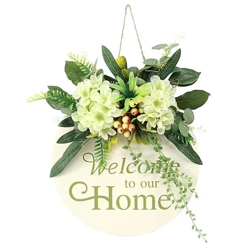Benvenuto Decorazione in Legno Soggiorno Porta d'ingresso Decorazione Porta Ghirlanda Decorazione della Parete di casa (Verde Menta)