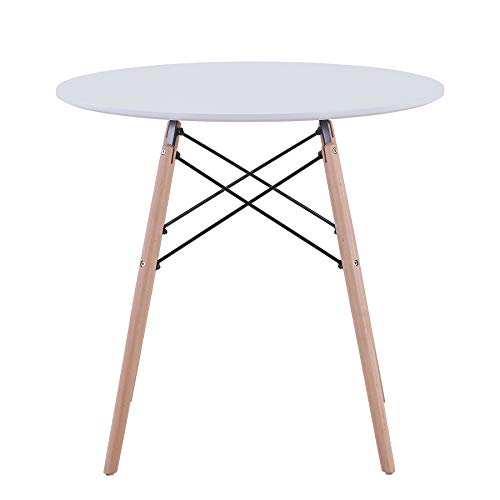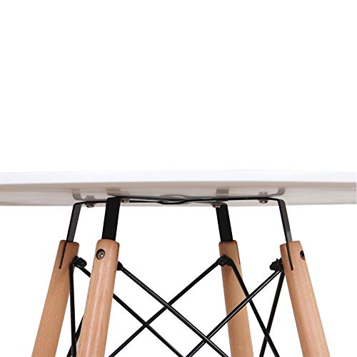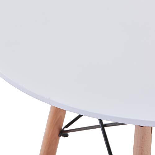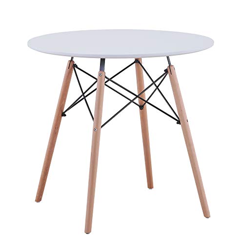 BenyLed Moderna Sala da Pranzo Rotonda con Gambe in Legno di Faggio e Struttura in Metallo, Tavolo da Cucina Scandinavo per Sala da Pranzo, Soggiorno, Ufficio,80 cm * 80 cm * 75 cm (YZJC-WH)