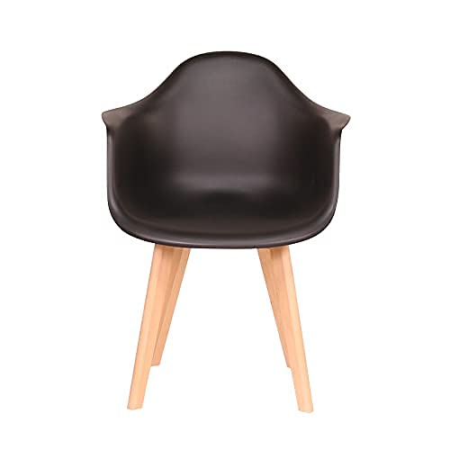 BenyLed Set di 4 sedie da pranzo con braccioli, poltrona design moderno sedie da cucina scandinave con gambe in legno di faggio (Nero)