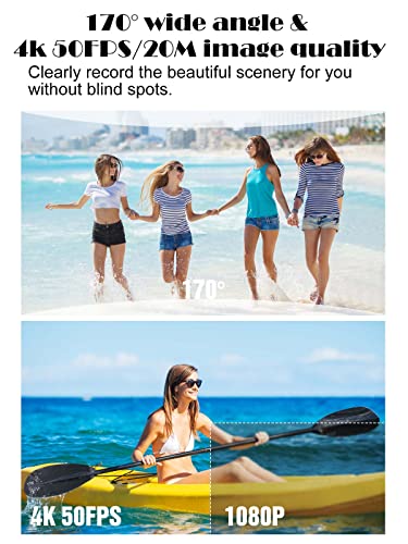 BEOEE Fotocamera sportiva 4K / 50fps 20MP, WiFi Action Camera subacquea 2.4G Telecomando, impermeabile 40 m schermo LCD da 2.0 pollici 170° grandangolo con due batterie da 1350 mAh