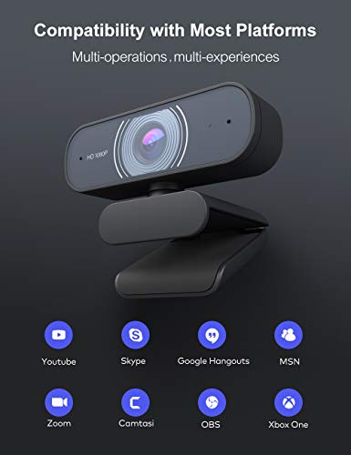 BEOEE Webcam, webcam 1080P, doppio microfono stereo, USB Plug & Play, webcam HD PC compatibile con Skype, Zoom, FaceTime, YouTube, PC, Mac, laptop