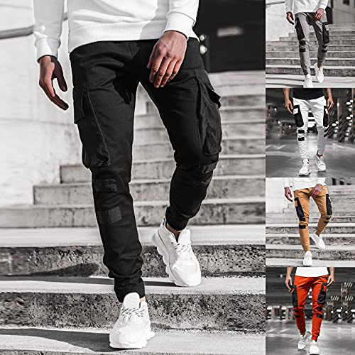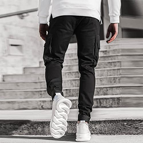 Beokeuioe Pantaloni cargo da uomo, elasticizzati, in tinta unita, elasticizzati, da jogging, trekking, da lavoro, sportivi, da corsa, da fitness, da corsa, A nero, XL