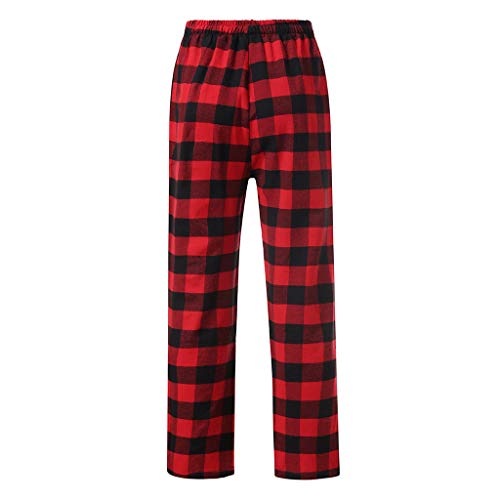 Beokeuioe - Pantaloni del pigiama da uomo, lunghi, in cotone, a quadri, adatti per il tempo libero, A Rot, M
