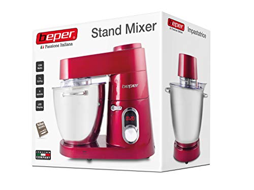 BEPER 1200W-7L Impastatrice Professionale, 1200 W, 7 Litri, Metallo, Rosso