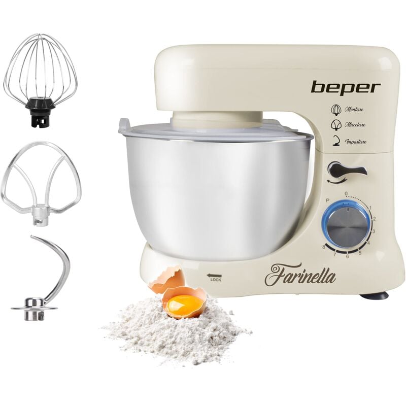 Descrizione Impastatrice con rotazione planetaria, le forcelle ruotano intorno al proprio asse e contemporaneamente lungo il bordo della terrina per spingere l'impasto verso l'interno. Contenitore in acciaio inossidabile removibile dalla capacità di 4,5L. Grazie al potente motore da 1000 watt e alle 8 velocità con tasto pulse selezionabili è ideale per impastare, amalgamare e montare a neve. Paraschizzi in plastica trasparente da appoggio sulla ciotola. Frusta a filo per montare le masse morbide, gancio a foglia per mescolare gli impasti e gancio impastatore per la lavorazione del pane. Sistema di bloccaggio rapido e base con ventose antiscivolo per lavorare con la massiama stabilità