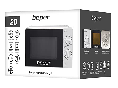 BEPER P101FOR001 Forno Microonde 20 Litri - Microonde Piccolo con Timer, Gill e 5 Livelli di Potenza