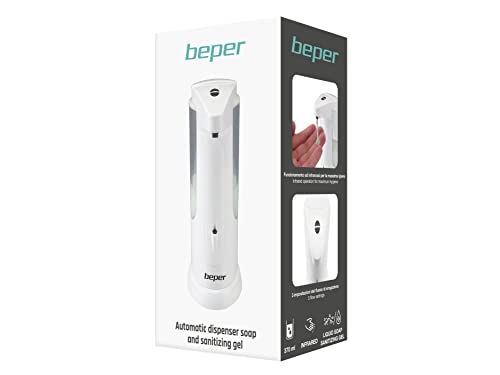 BEPER P201UTP004 Dispenser Sapone Automatico con Erogazione Regolabile Sensore di Precisione e Protezione Anti Goccia, 370ml Bianco
