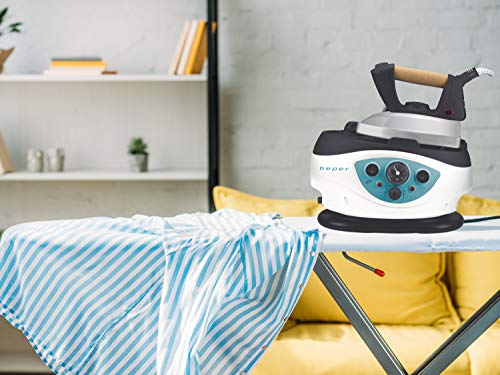 Beper 50.002 - Sistema Stirante con Manometro, Ferro da Stiro a Caldaia, Serbatoio 850 ml, Piastra Alluminio, Vapore Continuo, Temperatura Regolabile, Impugnatura in Sughero, Ironing System with Press