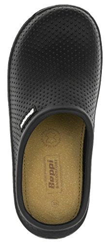 Beppi Clogs - Pantofole da donna con suola in pelle, comode, morbide, misura 38, colore: Nero