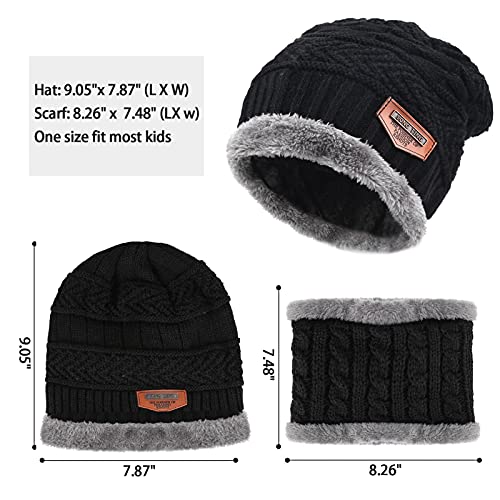 Bequemer Laden Bambini Bambine Cappello e Sciarpa con Fodera in Pile Set Berretto in Maglia Scaldacollo per Vita Quotidiana Outdoor Invernale, Taglia Unica (6-14 Anni), Z-Nero