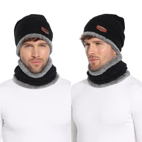 Bequemer Laden Set Cappello a Cuffia e Sciarpa Foderato in Pile Spesso Beanie in Maglia con Sciarpa per Uomo Donna