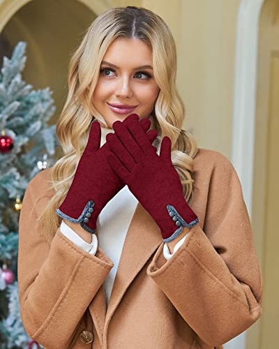 Bequemer Laden Donna Invernale Termici Touch Screen Guanti con Fodera in Pile, Elegante Caldo Guanti in Maglia con Bottoni Decorazione