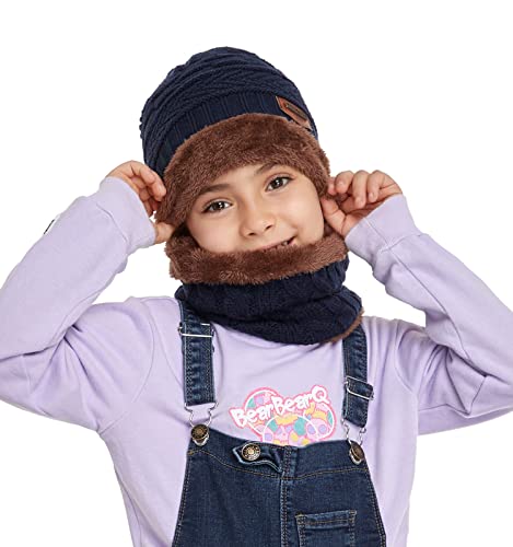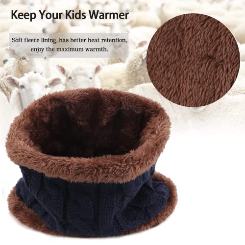 Bequemer Laden Set Sciarpa Circolare e Berretto a Maglia Cappello a Cuffia in Maglia e Scaldacollo con Fodera in Pile per Bambini, Ragazzi, Ragazze