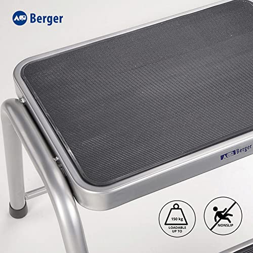 BERGER - Doppio scalino - Sgabello Campeggio per Roulotte, Camper, Caravan, Casa e Giardino - Scaletta in Acciaio 2 Gradini con Rivestimento Antiscivolo - Accessori Campeggio