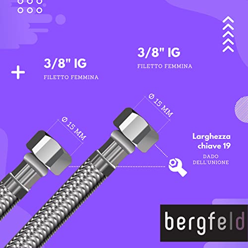 BERGFELD 3/8" IG x 3/8" IG x lunghezza - Tubo flessibile di collegamento per rubinetto, valvola angolare, lavabo, WC, cassetta di scarico da giardino, lunghezza: 60 cm