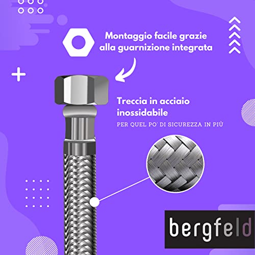 BERGFELD 3/8" IG x 3/8" AG x lunghezza - Tubo flessibile di collegamento per rubinetto, valvola angolare, lavabo, WC, cassetta di scarico, da giardino, lunghezza: 20 cm