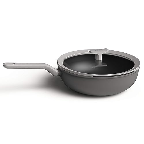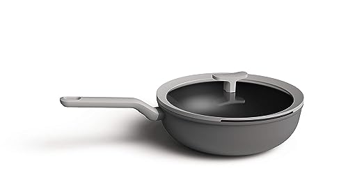 Berghoff LEO Wok antiaderente 27,9 cm 4,4 qt., manico resistente al freddo, coperchio in vetro, foro di scarico, verde ferno-rivestimento atossico, piano cottura a induzione, grigio