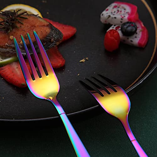 Include 6 pezzi di acciaio inossidabile di alta qualità, placcato in titanio arcobaleno lucido, servizio di forchetta da tavola per 6