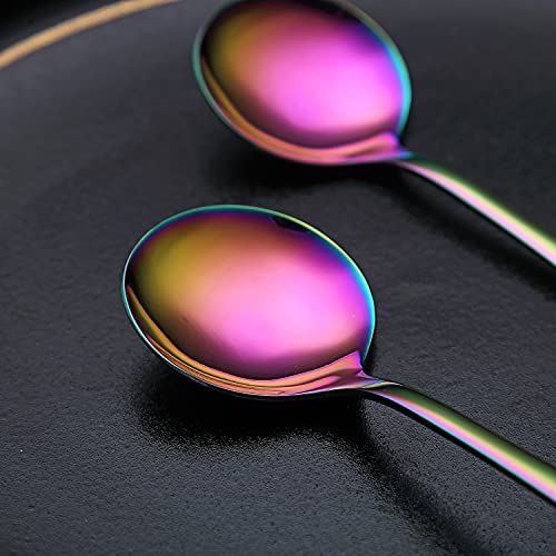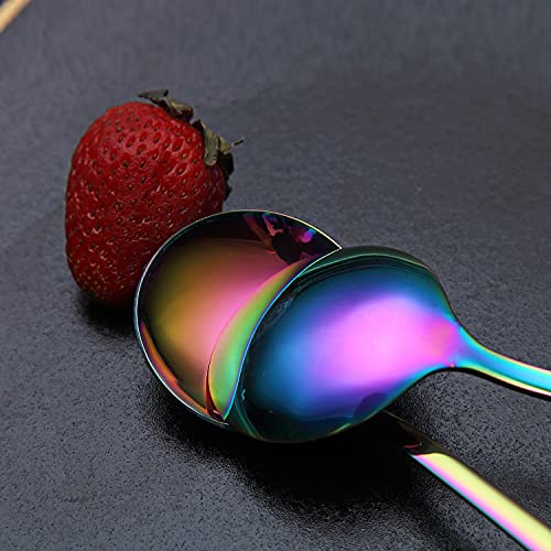 Berglander 6 pezzi Cucchiai da zuppa arcobaleno, posate a cucchiaio rotonde in acciaio inossidabile, cucchiaio da zuppa classico colorato lucido, set di cucchiai da tavola lavabili in lavastoviglie.